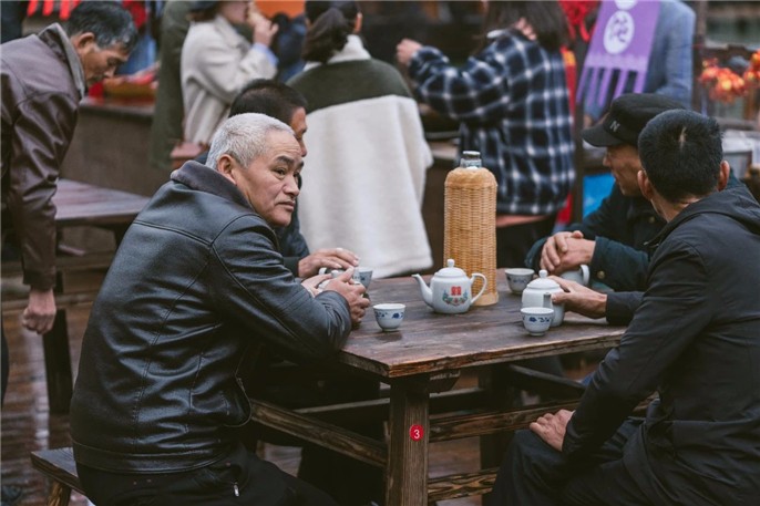 集市是生活狀態(tài)的延續(xù),不論處于哪種場(chǎng)面里,烏鎮(zhèn)人的“茶”是不能忘記的。水鄉(xiāng)百姓生活百態(tài)。吃茶賣菜,講究的是一種閑話鄰里的舒適狀態(tài)。